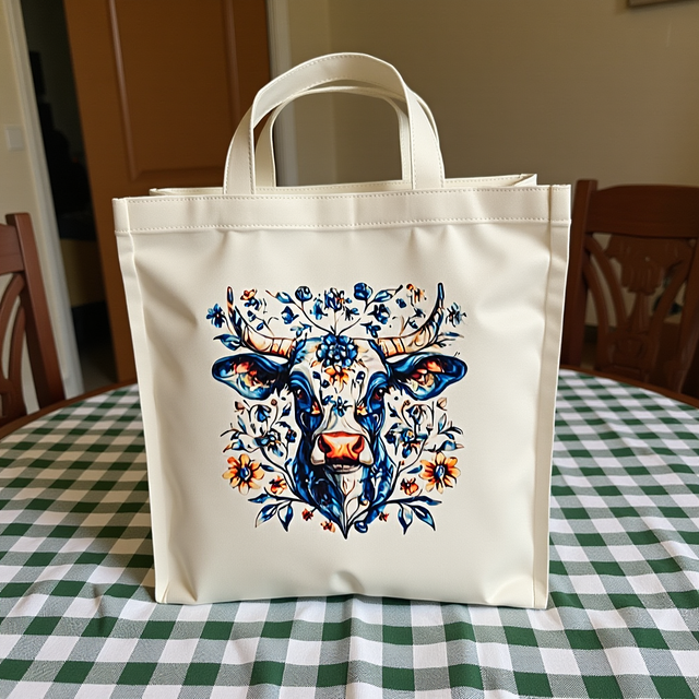 Introducing our stylish Tote Bag featuring a charming nod to Wedgwood blue flowers and a whimsical Highland cattle illustration. This versatile bag is perfect for carrying all your daily essentials while making a fashion statement. Made of durable materials, this bag is ideal for everyday use and great for shopping, work, or travel. The spacious interior is perfect for stashing your accessories on the go. Elevate your style with this unique and eye-catching tote bag that combines functionality, durability, and a touch of whimsy. Add a touch of personality to your wardrobe with this must-have accessory.