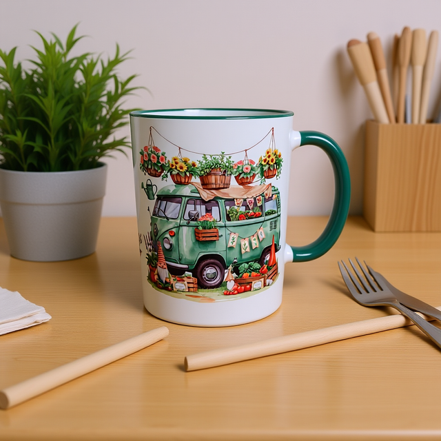 Embrace a nomadic lifestyle with our vibrant campervan featuring a unique and colourful design. Enjoy your daily dose of coffee while on the road with this comfortable and stylish home on wheels. The "home is where you park it" inscription serves as a reminder of the freedom and flexibility that comes with mobile living. Perfect for adventurers and travel enthusiasts, this campervan offers a cozy and practical space for road trips, camping, or simply enjoying the great outdoors. Experience the convenience and comfort of a portable home with our eye-catching and functional campervan.