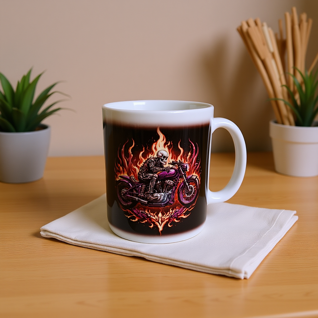 Get your caffeine fix with our Demon Biker Mug! This unique ceramic mug features a badass demon biker design, perfect for all coffee lovers with a taste for the unconventional. Made of high-quality materials, this mug is microwave and dishwasher safe, ensuring convenience and durability. Whether you're starting your day or taking a break, this mug is sure to make a statement. Bring some edge to your morning routine with the Demon Biker Mug - an essential addition to any biker's collection.